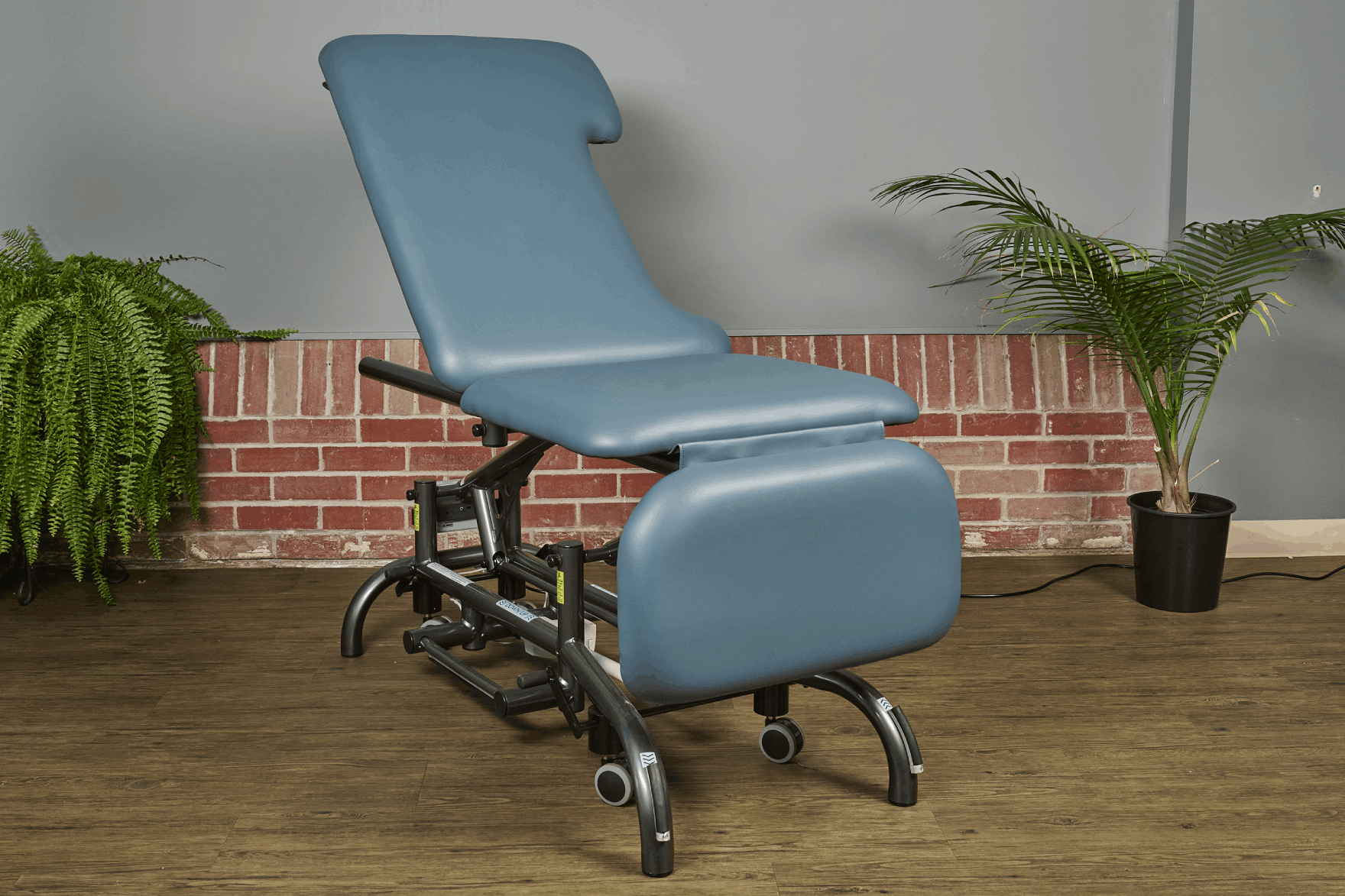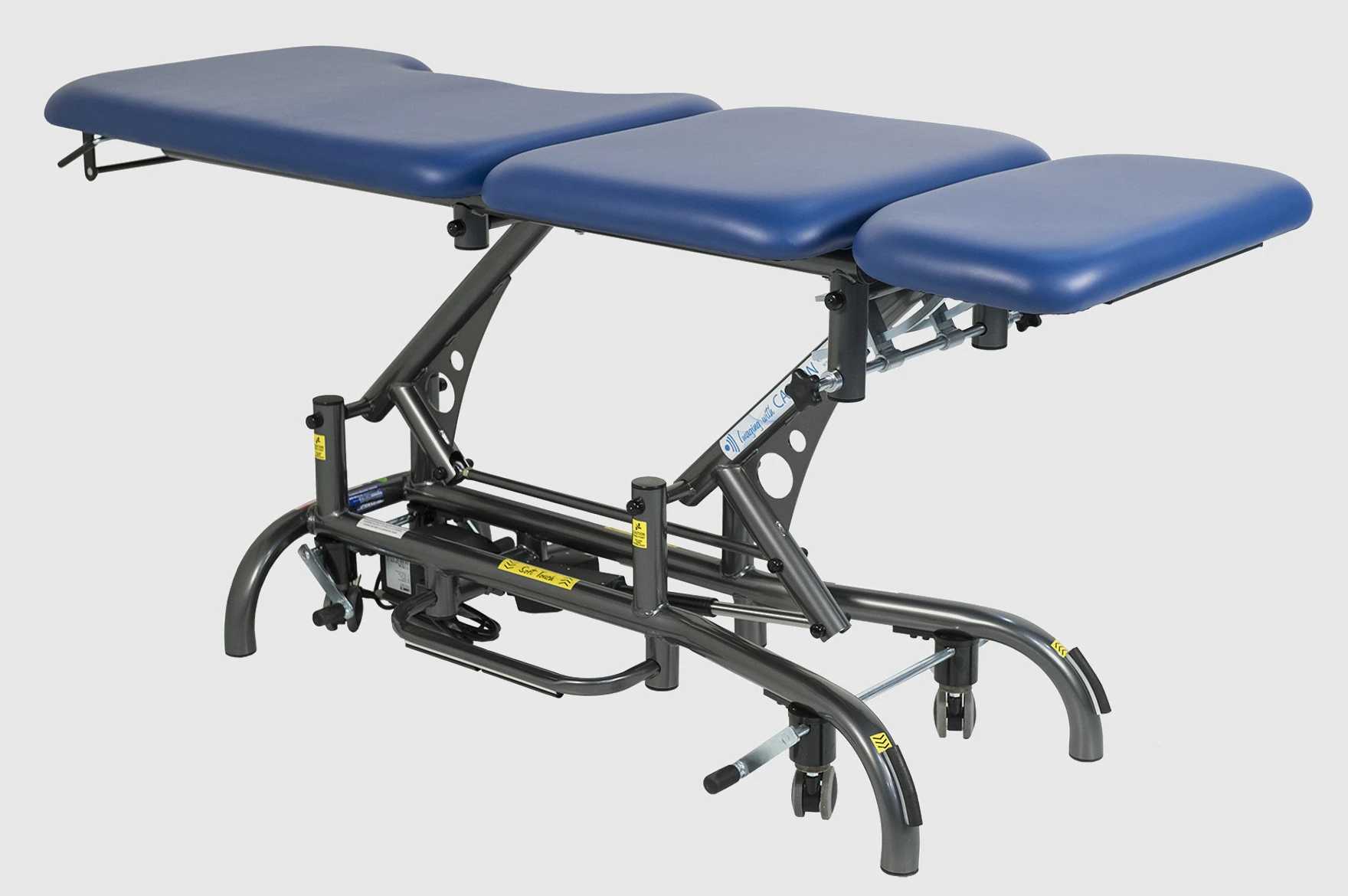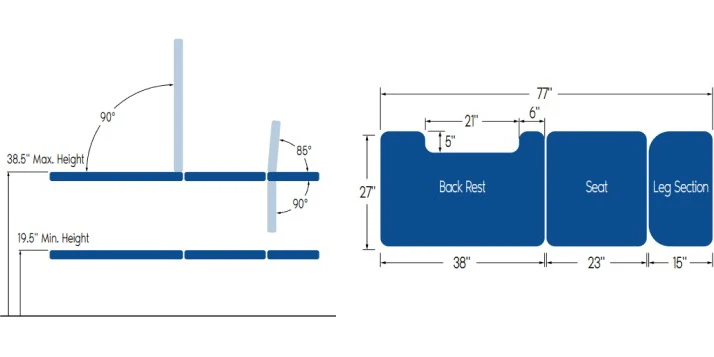 The Echo 100 easily adjusts to optimize ergonomic positioning for the sonographer while maintaining patient comfort. The backrest raises 90 degrees; the leg section lowers 90 degrees and rises to 85 degrees.